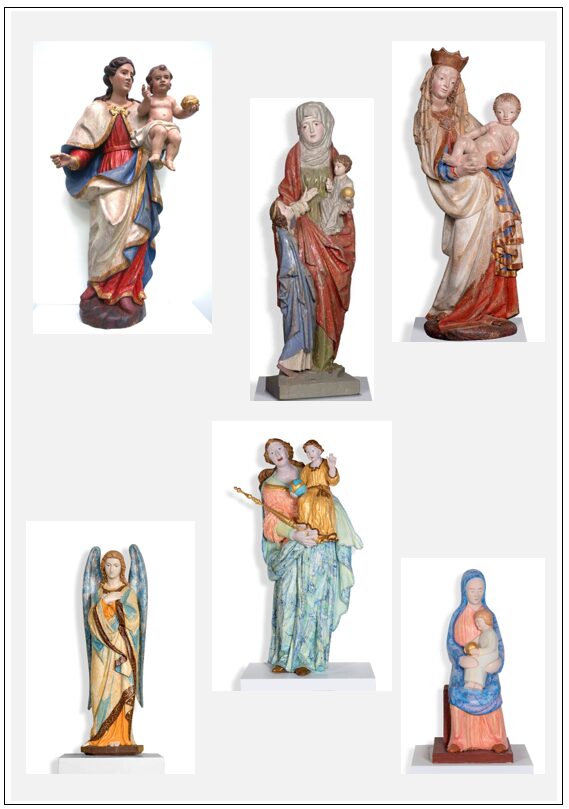 Die Neufassungen beziehen sich überwiegend auf Skulpturen und Reliefs, die bereits als Abformungen vorhanden waren. Diese bestanden entweder aus Gips, Terrakotta oder Kunstharz- nur in Einzelfällen aus Holz. Da es sich dabei um Kopien älterer oder historischer Skulpturen handelt, kann eine Neufassung nach Vergleichsbeispielen oder in freier Farbgestaltung erfolgen.